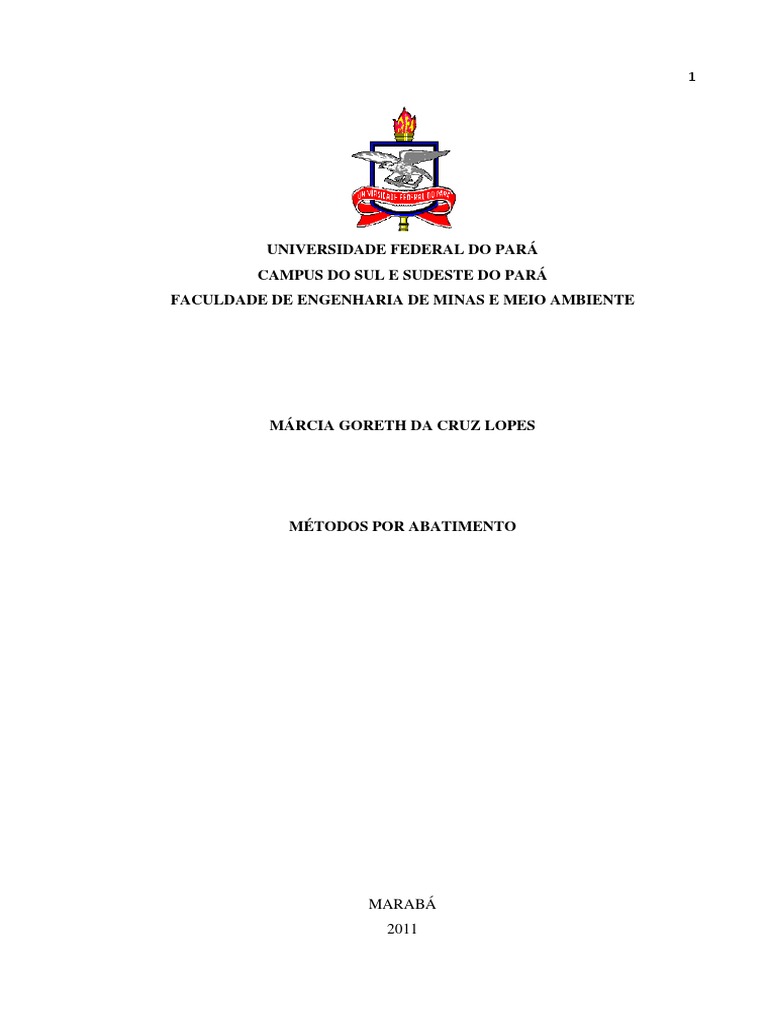 UNIVERSIDADE FEDERAL DO PAR CAMPUS DO SUL E SUDESTE DO PAR FACULDADE DE ENGENHARIA DE MINAS E MEIO AMBIENTE