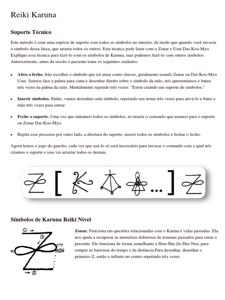 Este mtodo criar uma espcie de suporte com todos os smbolos no interior, de modo que quando voc invocar o smbolo dessa faixa, que arrasta todos os outros. Esta tcnica pode fazer com o Zonar e Usui Dai-Koo-Myo. Explique essa tcnica para faz-lo com os smbolos de Karuna, mas podemos faz-lo com outros smbolos. Anteriormente, antes da sesso o paciente tome os seguintes cuidados: