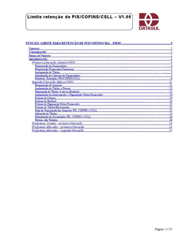 Limite retenção de PIS/COFINS/CSLL – V1.00