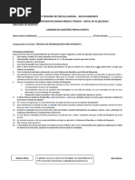 5 - Assinale a opo correta relativa Internet. a) Os protocolos inibem regras de verificao de semntica, regulao, concatenao e virtualizao nos acessos computacionais. b) FTP significa Protocolo de Topologia de Arquivos. c) Sistemas finais so conectados entre si por enlaces de comunicao e comutadores de pacotes. d) FTP significa Prioridade de Transferncia de Funes. e) Os protocolos so aes geradoras de sintaxe, semntica, sinopses e sincronizao em arquiteturas stand-by. 6 - Em Datamining, reduo da dimensionalidade : a) A expresso de um conjunto de dados por um conjunto menor de caractersticas do que em sua forma original. b) A reduo dos espaos de variao dos dados em relao a seus espaos originais. c) A supresso de caractersticas consideradas de menor prioridade pelo gestor. d) A expresso de um conjunto de dados por um conjunto de caractersticas de dimensionalidade conhecida. e) A expresso de um conjunto de caractersticas por um outro conjunto de caractersticas de dimensionalidade invariante em relao sua forma original. 7 - Quanto aos esquemas permitidos pela arquitetura de um SGBD (Sistema de Gerenciamento de Banco de Dados), correto afirmar que: a) Um esquema conceitual descreve em nvel setorial as rotinas do banco de dados. b) Um esquema interno descreve a estrutura fsica do armazenamento do banco de dados. c) Um esquema externo descreve as estruturas de armazenamento dos usurios clientes. d) Um esquema setorizado descreve a estrutura lgica do armazenamento do banco de dados de uso interno. e) Um esquema superior descreve as vises de gestores de nvel estratgico. 8 - Em um Banco de Dados Relacional: a) Uma linha chamada de clula, um cabealho da coluna chamado de top e a tabela chamada de relao. b) Uma linha chamada de relao, um cabealho da coluna chamado de atributo e a tabela chamada de n-tupla. c) Uma linha chamada de tupla, um cabealho da coluna chamado de sentena e a tabela chamada de planilha. d) Uma linha chamada de dataset, um cabealho da coluna chamado de atributo e a tabela chamada de normalizao. e) Uma linha chamada de tupla, um cabealho da coluna chamado de atributo e a tabela chamada de relao.