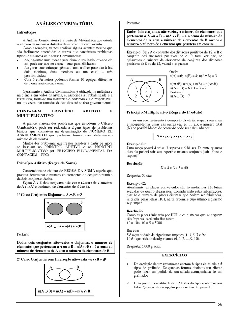 se baseiam no PRINCPIO ADITIVO e no PRINCPIO