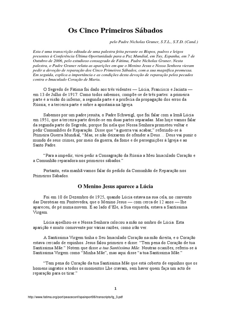 Primeiros Sbados, p. 4; tambm em The Fatima Crusader, N 49, Vero de 1995, e na