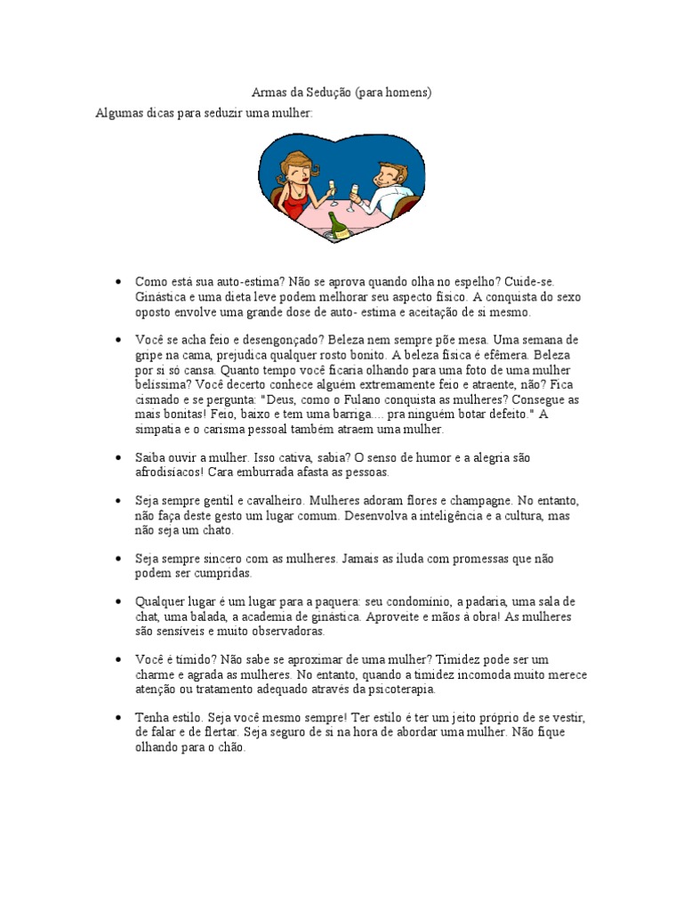 • Na hora do flerte, fique atento aos sinais: o olhar, um sorriso. Você, homem, saberá