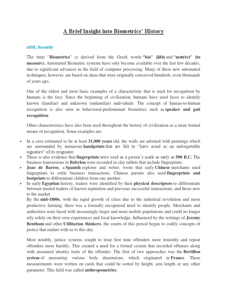 measure). Automated Biometric systems have only become available over the last few decades,