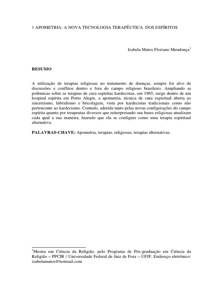 Religião – PPCIR / Universidade Federal de Juiz de Fora – UFJF. Endereço eletrônico: