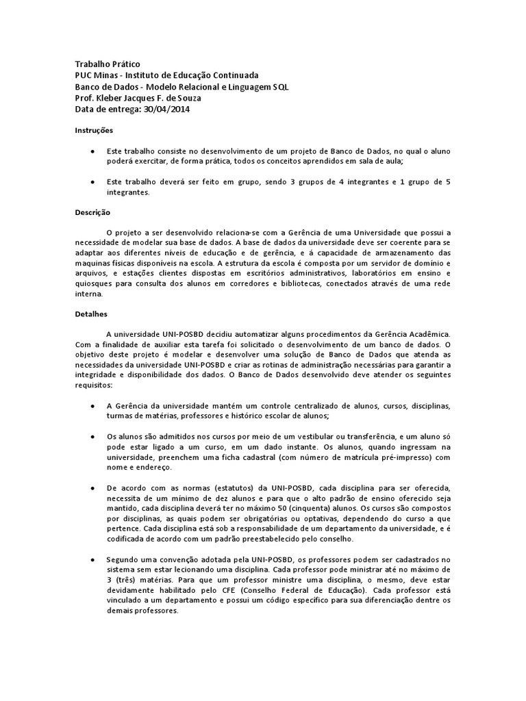 Este trabalho consiste no desenvolvimento de um projeto de Banco de Dados, no qual o aluno