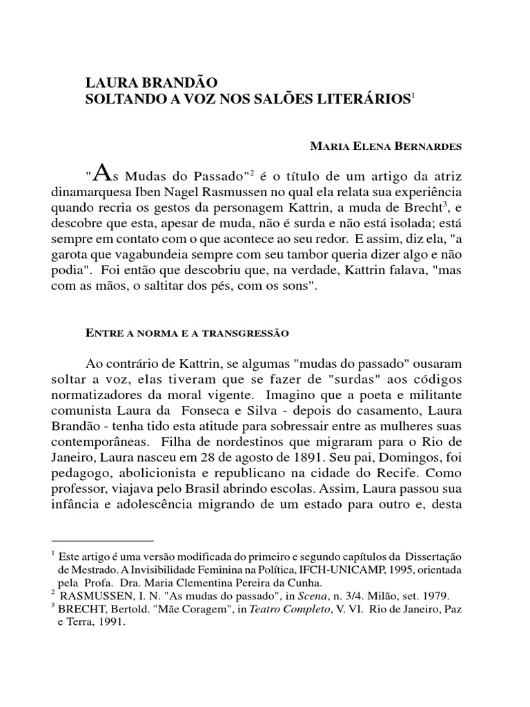 brasileira. No consta que Laura tenha participado de maneira organizada