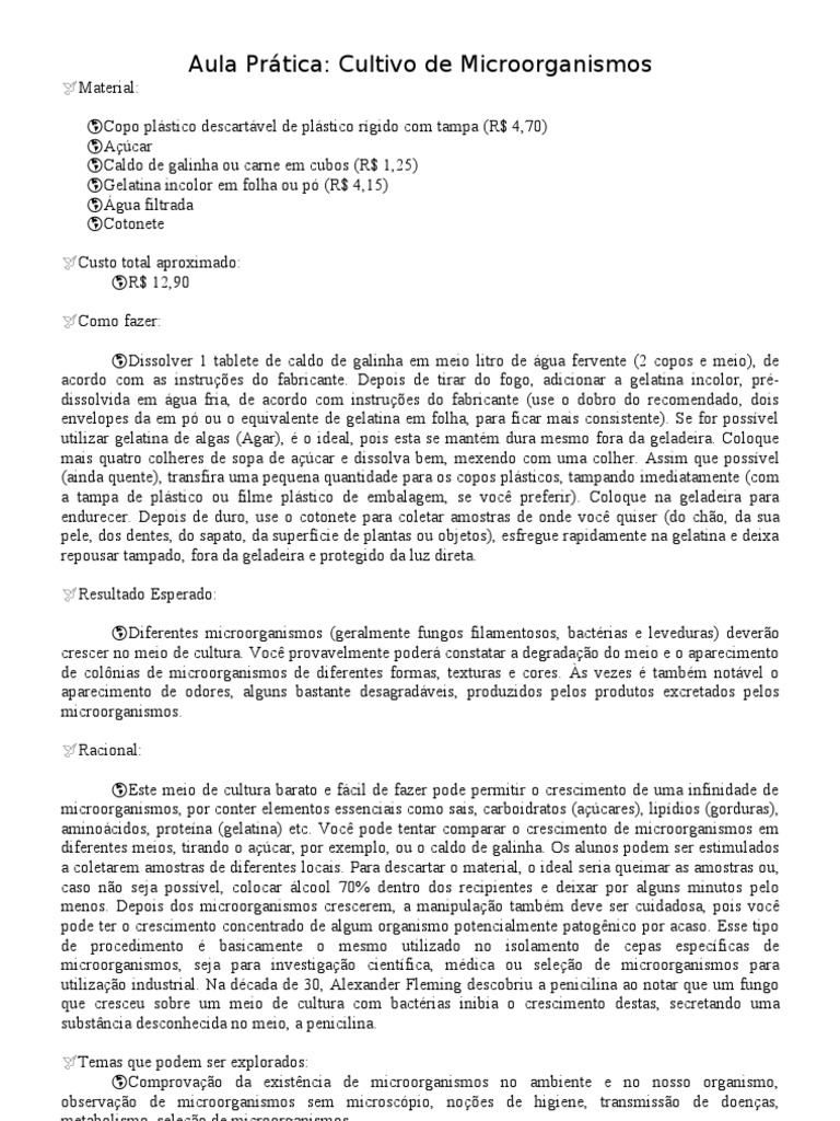 menos. Depois dos microorganismos crescerem, a manipulação também deve ser cuidadosa, pois você