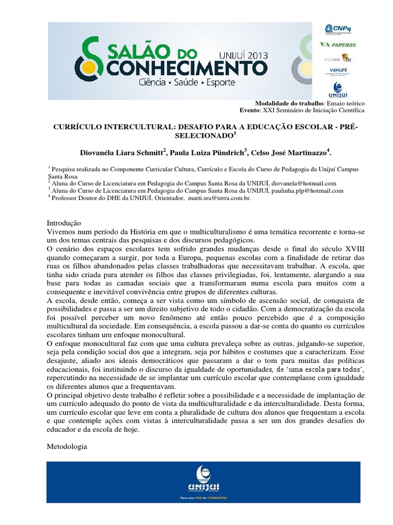 um currculo adequado do ponto de vista da multiculturalidade e da interculturalidade. Desta forma,