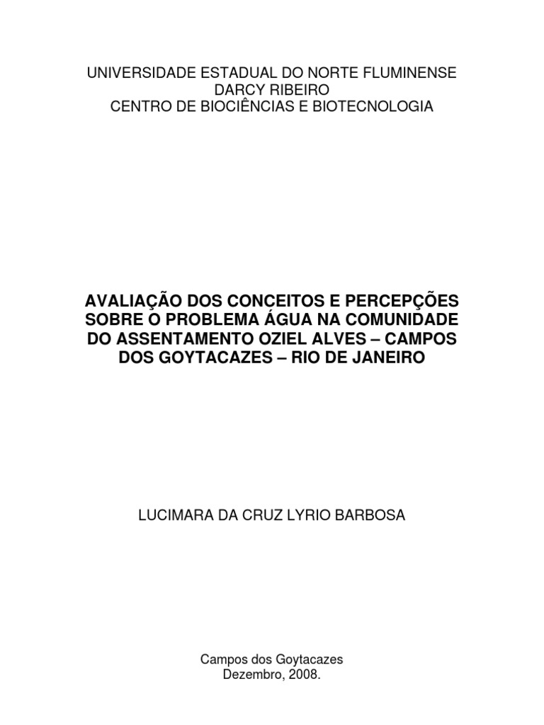 dos Goytacazes, RJ. Monografia apresentada ao Centro de Biociências e