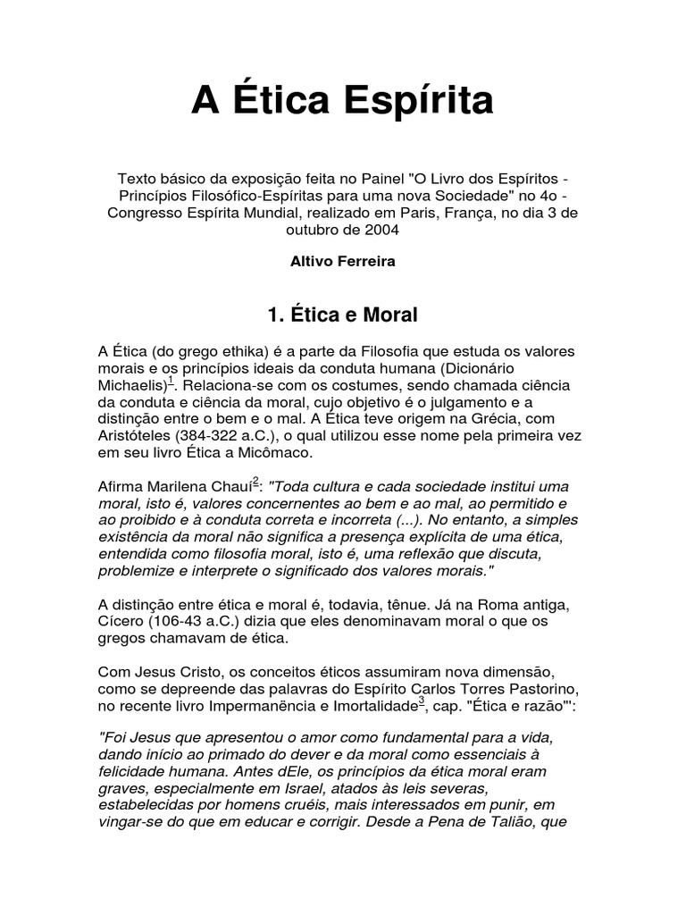 corresponder-lhe determinada ética, a Ética Espírita"(destaque do
