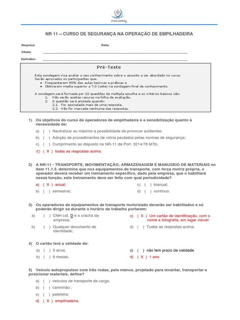 1) Os objetivos do curso de operadores de empilhadeira a sensibilizao quanto