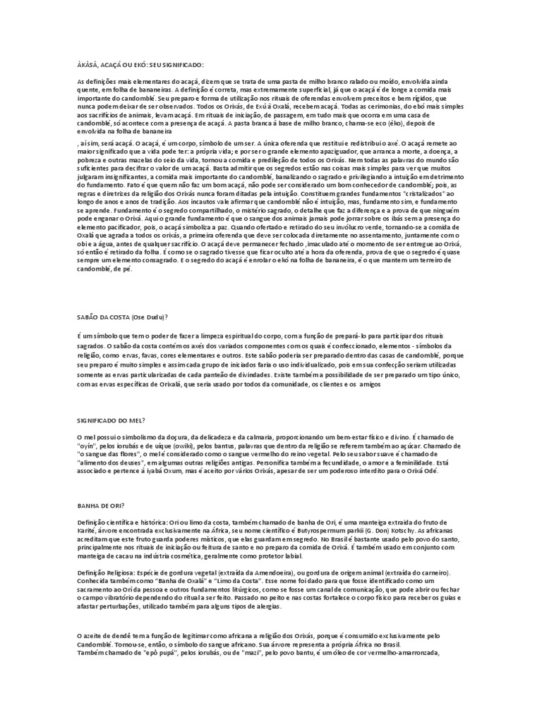 nunca podem deixar de ser observados. Todos os Orixs, de Ex Oxal, recebem aca. Todas as cerimonias, do eb mais simples