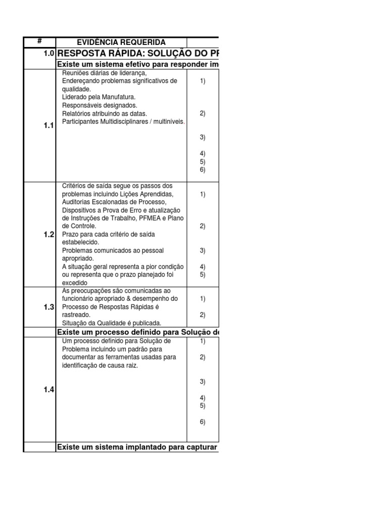 Problemas internos so includos e discutidos no mesmo critrio de Resposta Rpida. (ex. Constataes (No