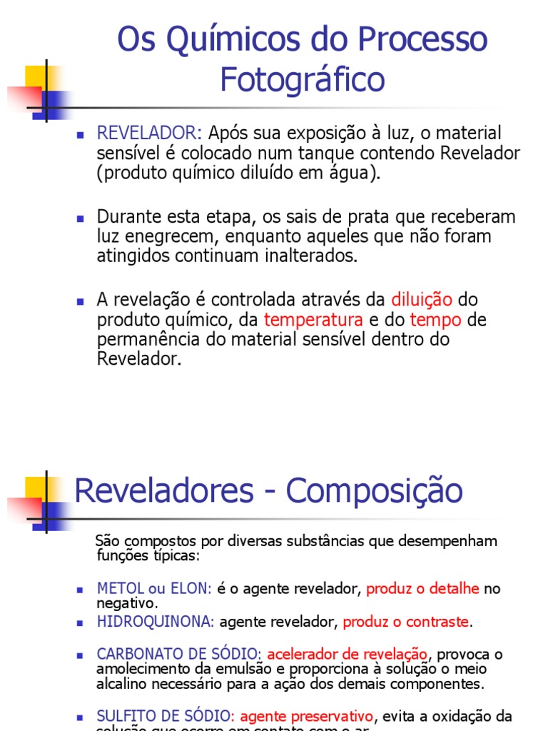 Exemplos: D-76, ID-11, Agfa 12, Metol-Sufito