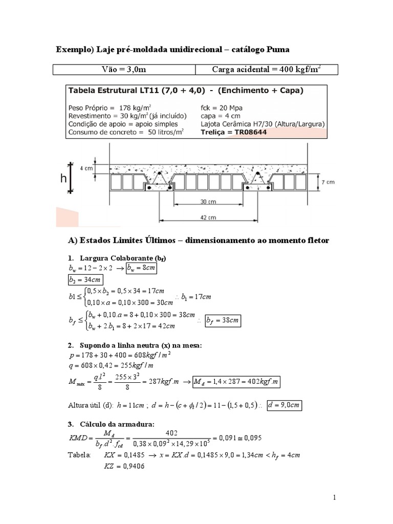 (resistncia ao momento fletor), a laje no satisfaz ao Estado Limite de