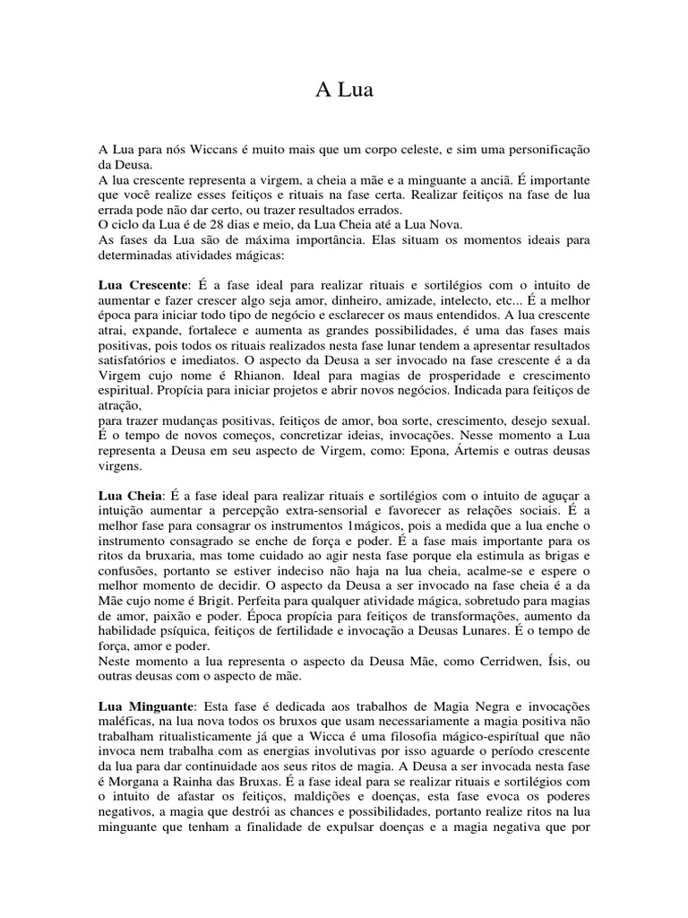 que voc realize esses feitios e rituais na fase certa. Realizar feitios na fase de lua