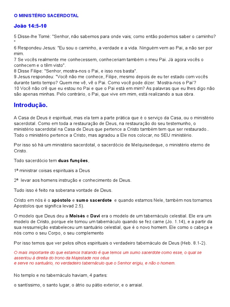 sacerdotal# /omo em toda a restara8ão de Des, na restara8ão do se testemnho, o