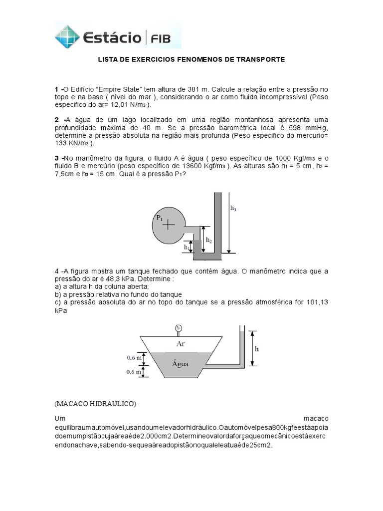 fluido 6 e merc7rio (peso especfico de 138&& 4+f(m3 !. )s alturas so -1 $ 1 cm" -% $