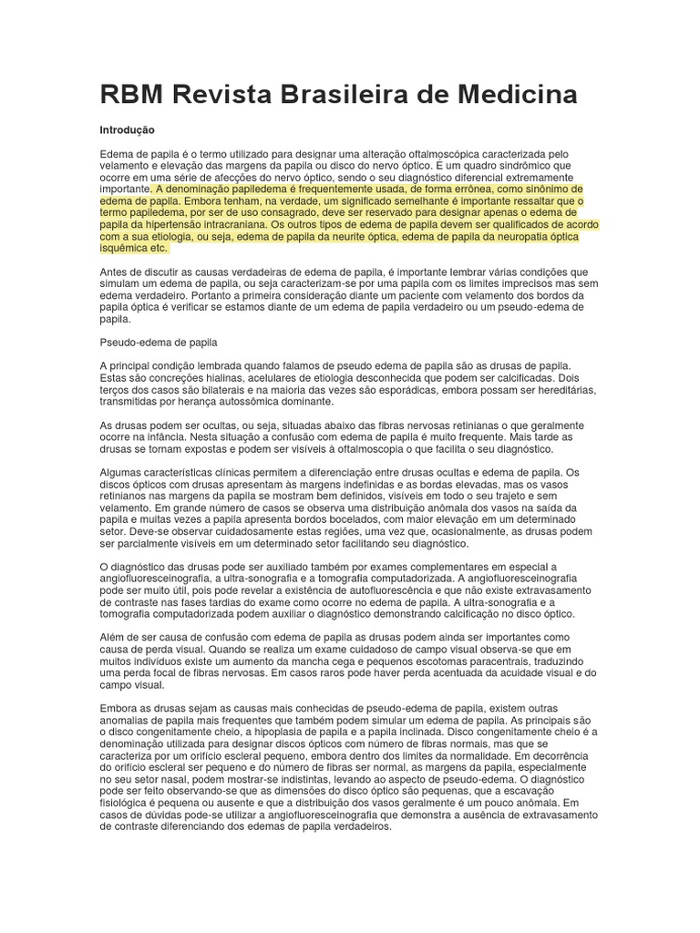 papila ptica verificar se estamos diante de um edema de papila verdadeiro ou um pseudo-edema de