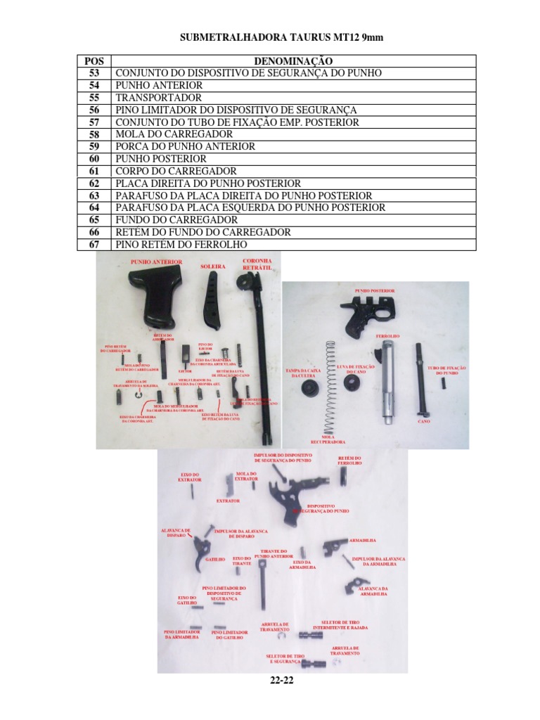 VISTA EXPLODIDA DA SUBMETRALHADORA TAURUS MT12AD