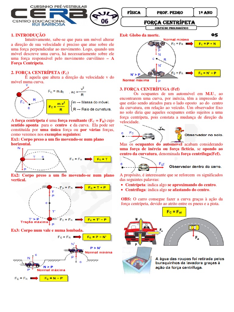 centro da curvatura, denominada fora centrfuga(Fcf).