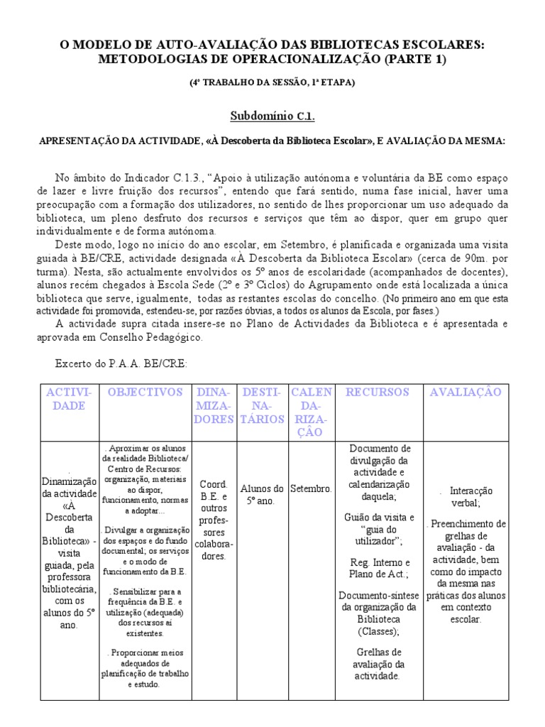 O MODELO DE AUTO-AVALIAÇÃO DAS BIBLIOTECAS ESCOLARES: