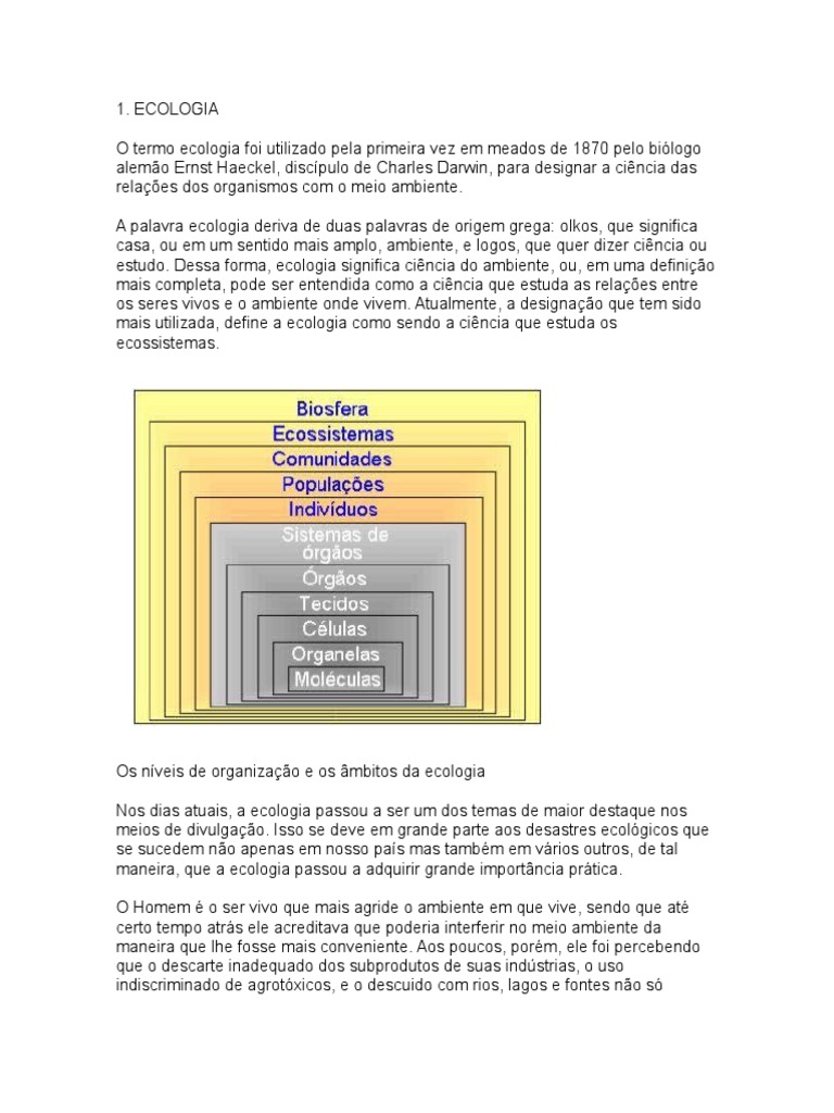 estudo. Dessa forma, ecologia significa cincia do ambiente, ou, em uma definio