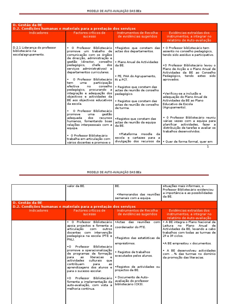 D.2.1 Liderança do professor O Professor Bibliotecário Registos que constam das O Professor bibliotecário tem