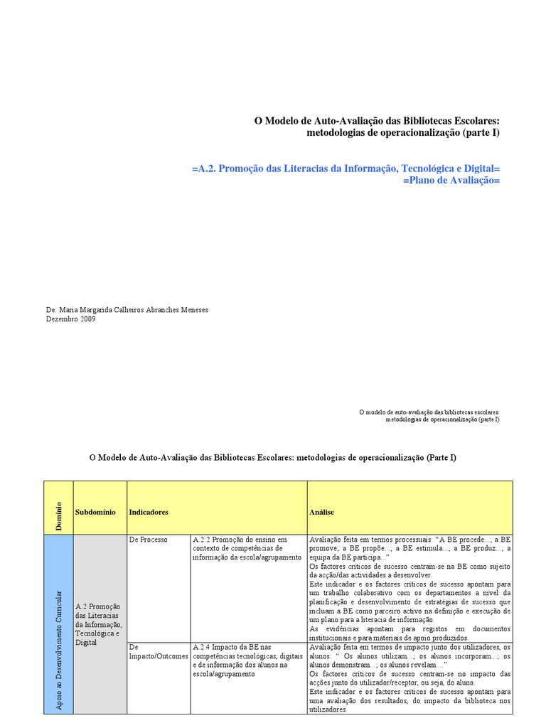 Dezembro 2009 O modelo de auto-avaliação das bibliotecas escolares: metodologias de operacionalização (parte I)