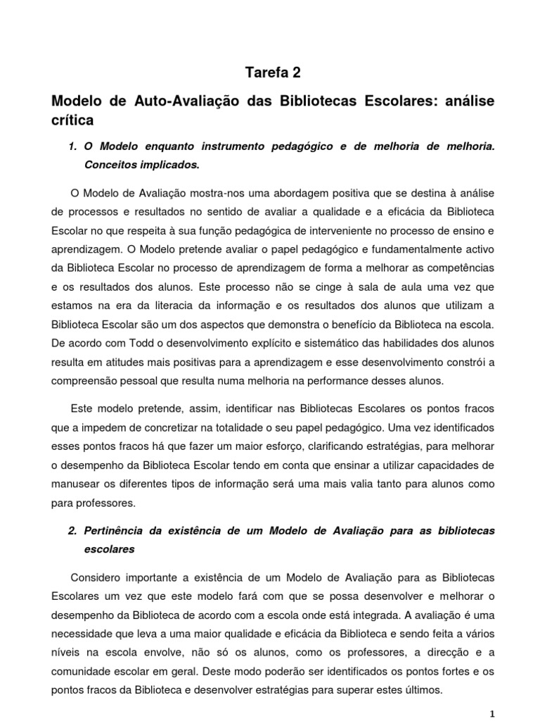 Modelo de Auto-Avaliação das Bibliotecas Escolares: análise crítica