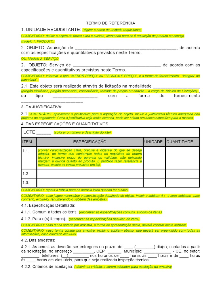 licitados e suas especificaes tcnicas detalhadas. Para contrataes que necessitem de empresas com qualificaes