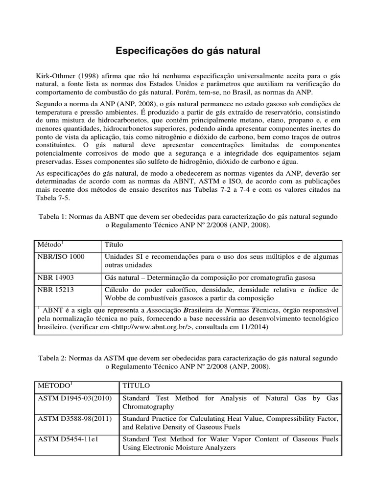 comportamento de combusto do gs natural. Porm, tem-se, no Brasil, as normas da ANP.