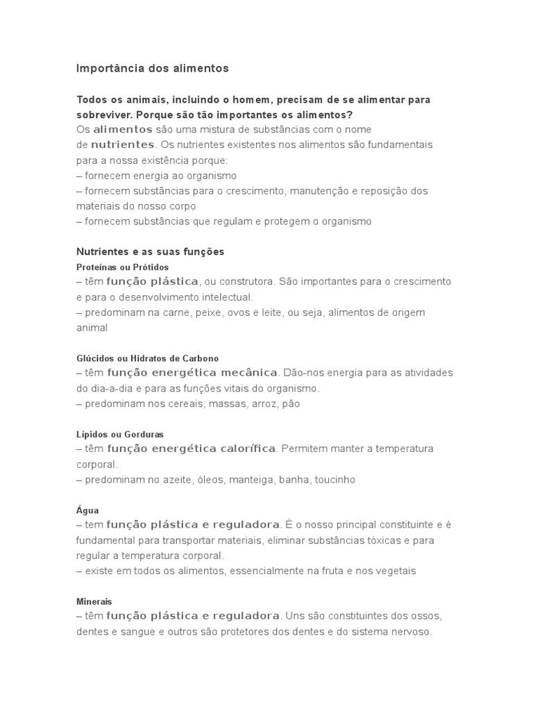 de nutrientes. Os nutrientes existentes nos alimentos so fundamentais