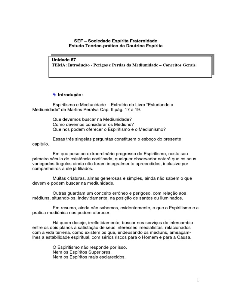 Livro Estudando a Mediunidade de Martins Peralva Cap. II pg. 17 a 19.Livro