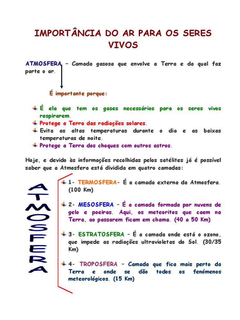 Alm de ser um bem indispensvel vida dos seres vivos, o ar ou
