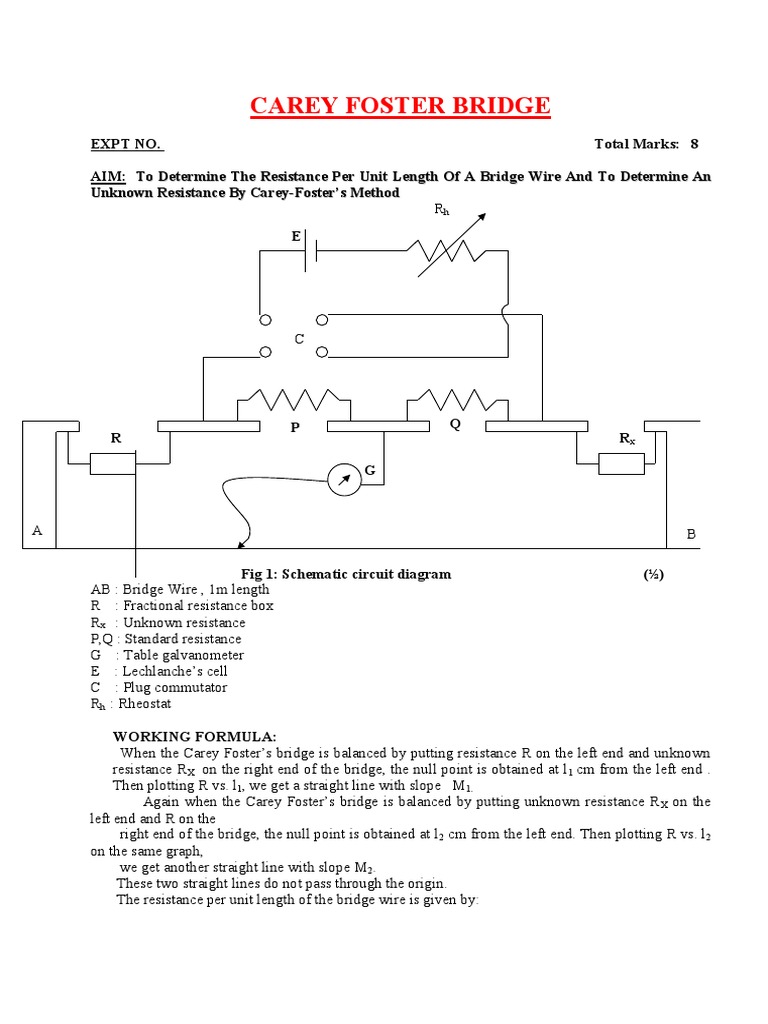 AIM: TToo DDeetteerrmmiinnee TThhee RReessiissttaannccee PPeerr UUnniitt LLeennggtthh OOff AA BBrriiddggee WWiirree AAnndd TToo DDeetteerrmmiinnee AAnn UUnnkknnoowwnn RReessiissttaannccee BByy CCaarreeyy--FFoosstteerr’’ss MMeetthhoodd
