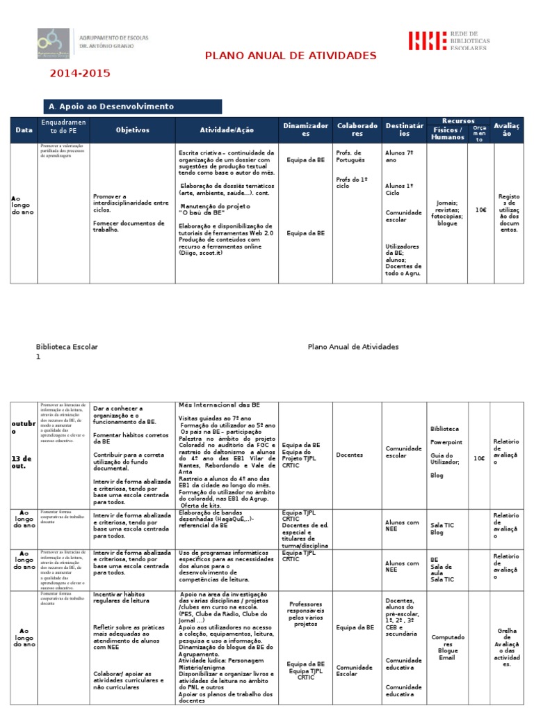 A avaliao ser baseada nos planos de melhoria aplicados s BE integradas na RBE. No final do ano elaborar-se- um relatrio por cada