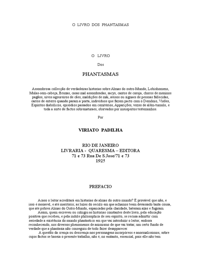 pagos, uivos agoureiros de ces, maldies de mi, avisos ou signaes de pessoas fallecidas,