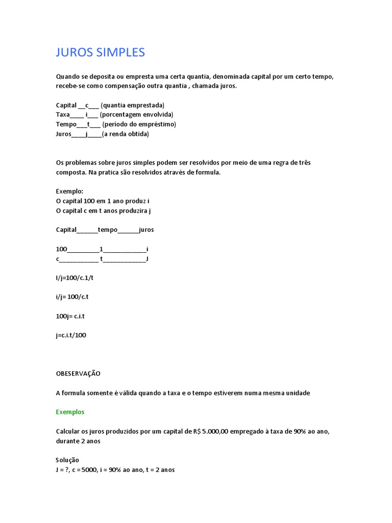 Os problemas sobre juros simples podem ser resolvidos por meio de uma regra de trs