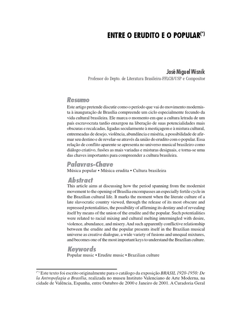 Popular music Erudite music Brazilian culture