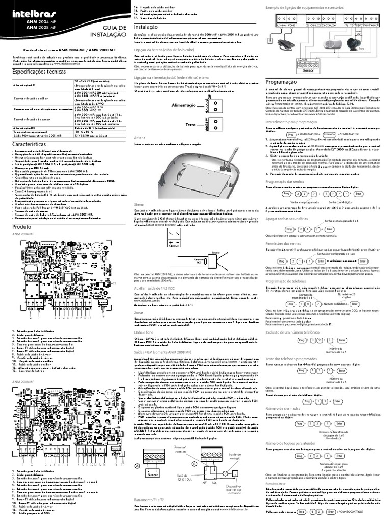 Ateno: a alimentao das centrais de alarme ANM 2004 MF e ANM 2008 MF s poder ser