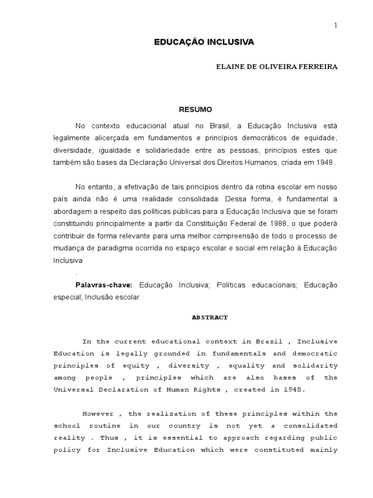 sobre educao inclusiva para a democratizao de um ensino de qualidade para