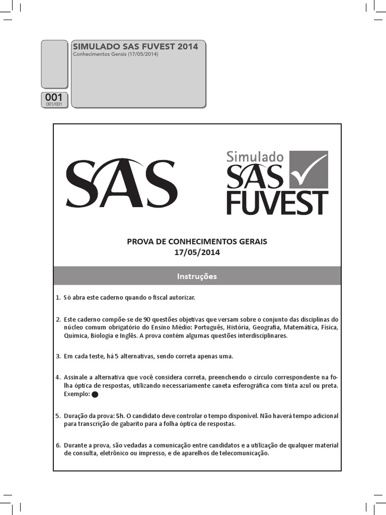 Qumica, Biologia e Ingls. A prova contm algumas questes interdisciplinares.
