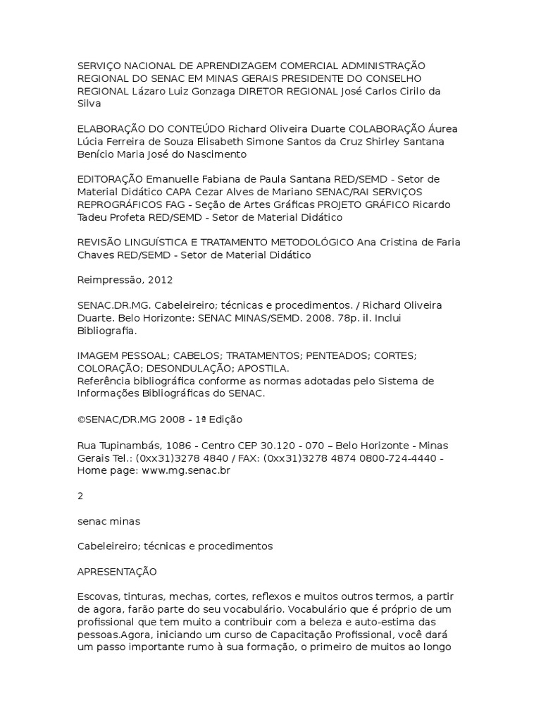SENAC.DR.MG. Cabeleireiro; tcnicas e procedimentos. / Richard Oliveira