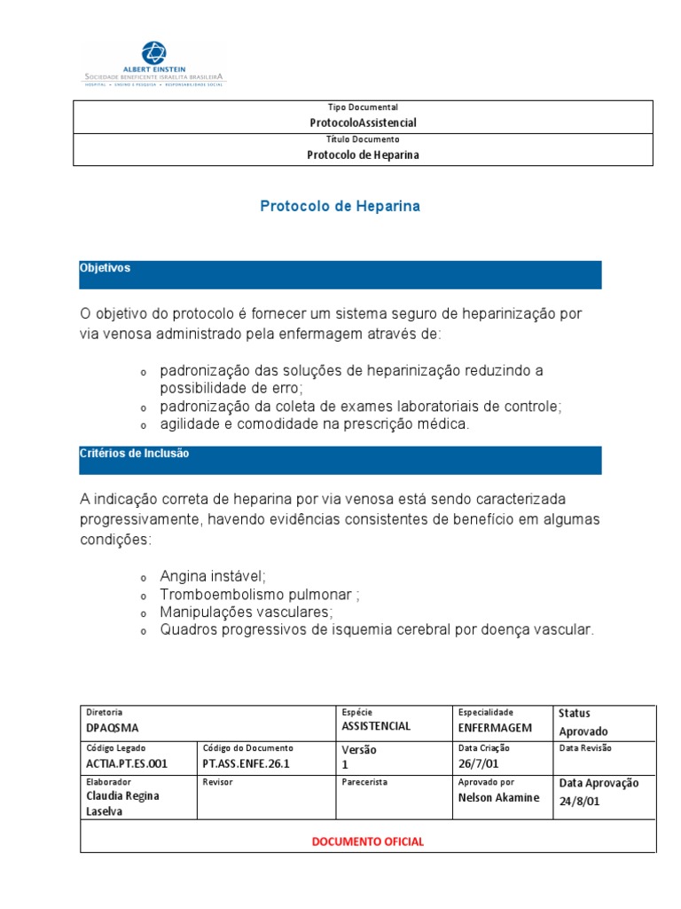 O objetivo do protocolo fornecer um sistema seguro de heparinizao por