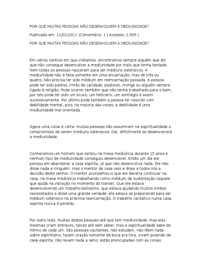 POR QUE MUITAS PESSOAS NÃO DESENVOLVEM A MEDIUNIDADE?