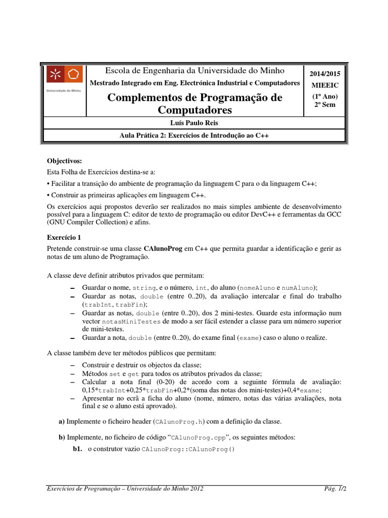 b) Implemente, no ficheiro de cdigo CAlunoProg.cpp, os seguintes mtodos: