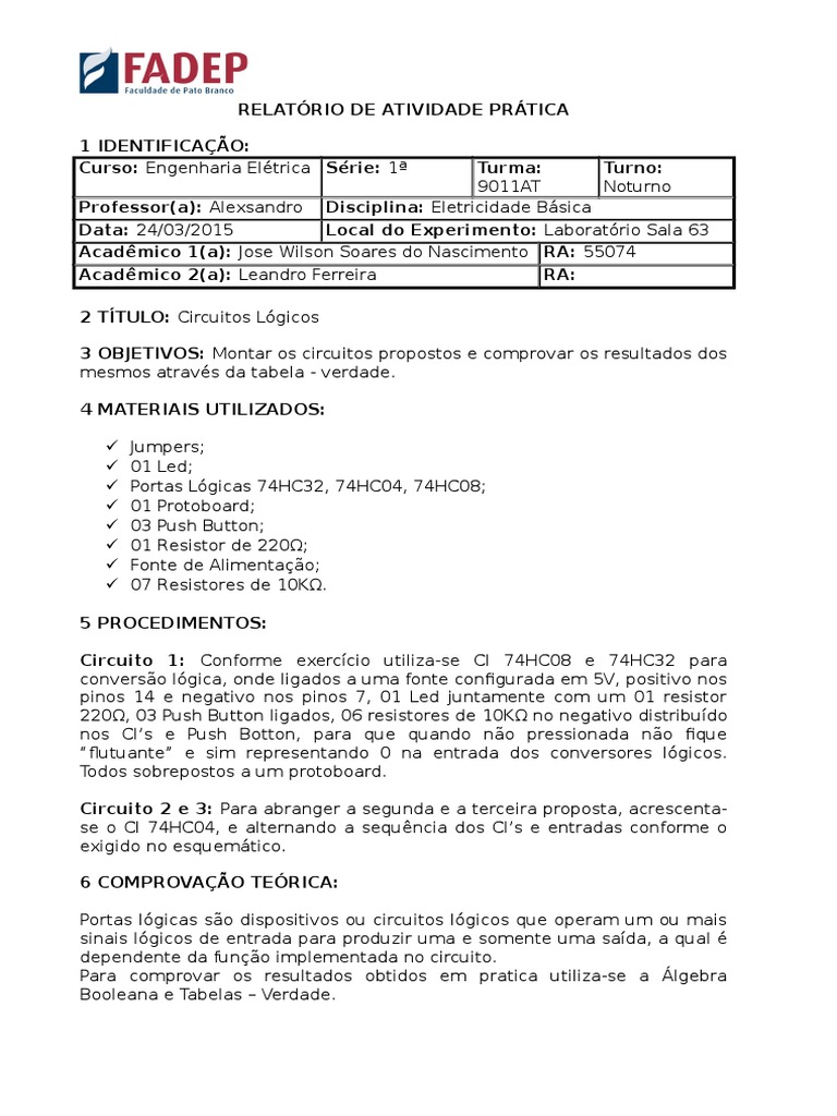 Acadmico 1(a): Jose Wilson Soares do Nascimento RA: 55074