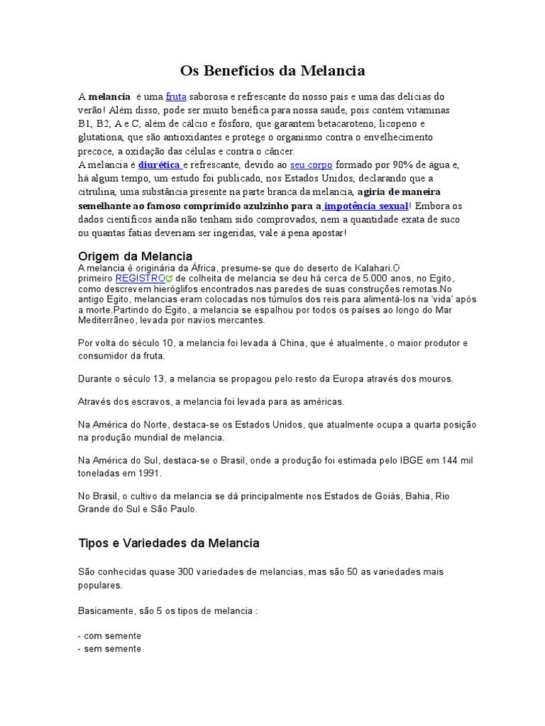 a morte.Partindo do Egito, a melancia se espalhou por todos os pases ao longo do Mar